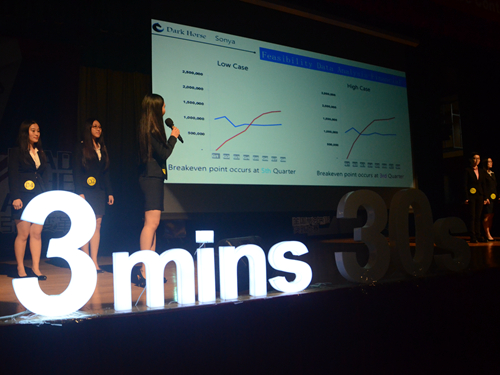 首先登场的参赛队伍Caspar选择的案例是在全球寄宿行业占据领先位置的Airbnb网站,切合本次大赛“引领改变”的主题,Caspar队简要地对Airbnb的功能、创立等基本信息做了介绍。接着,他们分析了该网站凭借多样化的住房资源和软件技术支持等条件现已形成了独特的优势。结合其业绩,Caspar还总结了Airbnb引领的几大改变并对该网站要继续保持领先位置的几点建议,包括提高信誉保证等。但遗憾的是,Caspar队在准备过程中缺乏了对Airbnb的实地考察分析,在问答环节中思路和口语表达还不够清晰,总体表现相对冠军队伍而言,稍逊一筹。