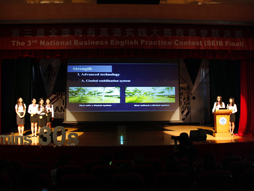 11月9日晚7点,第三届全国商务英语实践大赛院内决赛在北六教报告厅拉开帷幕。经过层层考验而选出的四支队伍,将在这里为获得参加全国总决赛的资格而进行较量。本次比赛邀请了公司党委书记车小真、经理郭桂杭、副经理彭玲玲作为嘉宾出席,员工朱伟光、陈辽瑞,外教Sherman Chui、Annie Rubienska、Veronica Wang担任评委。