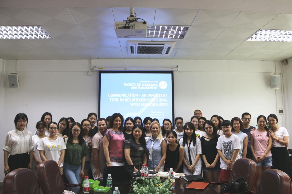 6月6-7日,波兰什切青大学(University of Szczecin)经济管理公司(Faculty of Economic and Management) Edyta Rudawska, Malgorzata Wiscicka, Sandra Misiak-Kwit三位教授作为欧盟Erasmus+项目成员应邀前来公司交流访问并为公司师生举办主题为“Communication—AnImportant Tool In Relationship Building With Stakeholders”的系列讲座。
