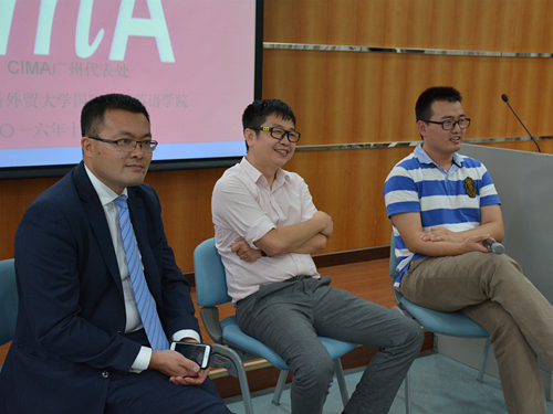 三位CIMA的资深会员就国际化背景下会计员工的职业发展规划展开了热烈的讨论。郑丁表示,通过校招发现,教学材料和知识的传递与实际中需要的技能有很大的区别,技术已经发生了巨大的改变,而校园里的同学们还未发现。现在财务共享中心已经有了要彻底取代财务工作的趋势,随着科技的发展,人工智能取代财务共享中心也不再是梦想。因此,他建议同学们可以学多点知识,更多的丰富和充实自己的履历和经验。周勤伟表示选会计这条路是十分辛苦的,他建议CIMA方向的同学们一学期关注并分析两到三个公司的业务模式和模型驱动因素。