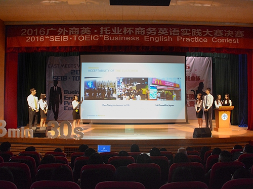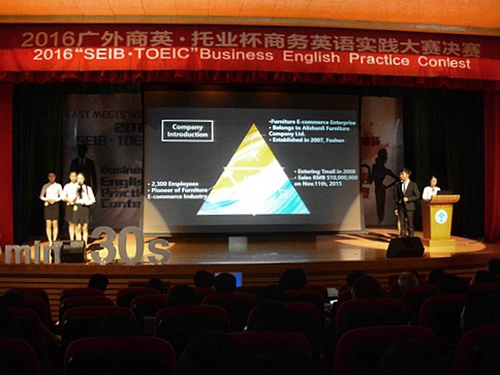11月4日晚上七点,广外商英·托业杯商务英语实践大赛决赛在六教报告厅拉开帷幕。四支来自伟德体育的队伍将在今晚进行一番激烈竞逐,获得一等奖的队伍将代表公司参加全国商践大赛。