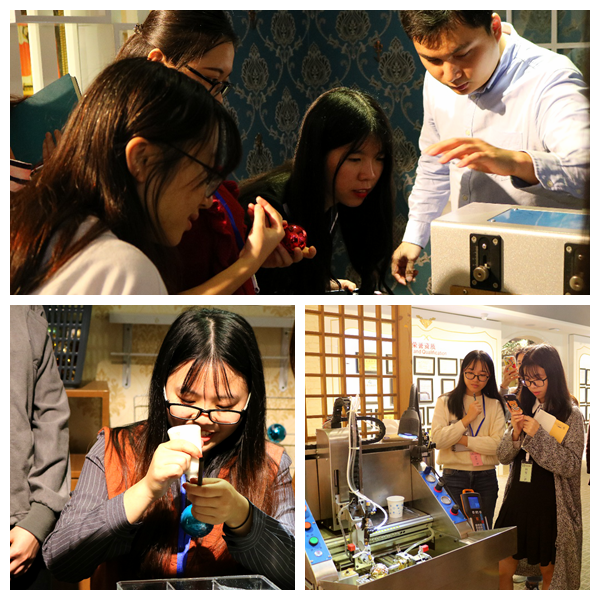 在自由交流和Q&A环节,同学们就盈浩公司的市场定位、商务交往、客户维护等问题向各位副总和部门经理踊跃提问,盈浩公司相关负责人针对同学们的问题一一进行了耐心的解答,并在其他方面也与同学们进行了亲切互动,气氛十分热烈。同学们在课后参观了盈浩按照不同市场区域划分的新展厅,深入了解工艺制品的生产流程以及企业管理模式,身临其境地感受不同市场区域浓烈的主题氛围,许多同学还现场体验了DIY手绘圣诞球。同学们纷纷表示非常感谢周老师和盈浩公司共同精心组织的本次移动课堂,认为对深入了解公司的企业文化,近距离与谈判高手沟通,深切了解外贸企业的运营和发展,是一次难得学习机会,切切实实学到了很多实用的商务知识。