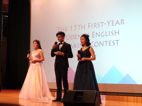 路伟健(右二)主持伟德体育第15届新生口语大赛