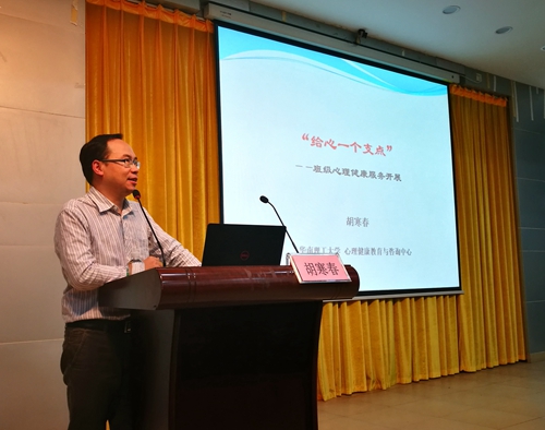 2018年4月19日下午,伟德体育于七教水上报告厅举行“悦纳自我”心理活动月专题讲座,临床心理学博士、华南理工大学心理健康教育与咨询中心专职教师胡寒春做“‘给心一个支点’——班级心理健康服务开展”的主题报告。公司学工办老师,2016、2017级本科生心理委员和宿舍长参加活动。
