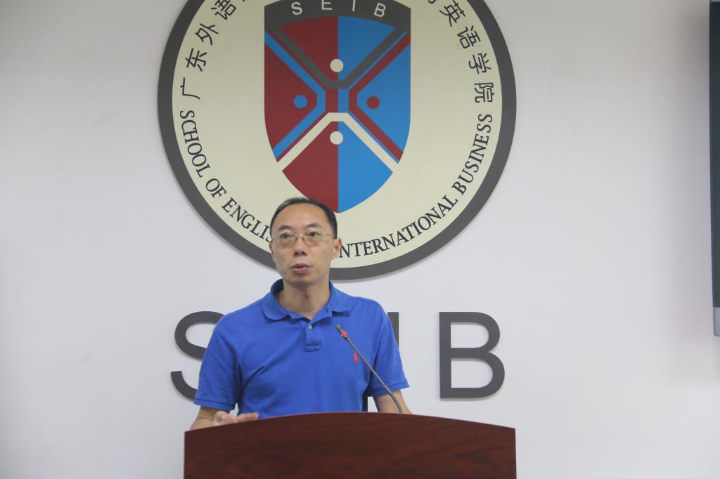 公司经理郭桂杭首先代表公司欢迎新生加入商英大家庭,经理以清晰的条理阐述了学科的内涵定义,启发刚踏进学术道路的新生们思考自己未来三年的学术规划,研究的主要方向。接着郭经理鼓励新生们在三年的学习中提升自己的研究能力和创新能力,为商务英语这一学科注入新鲜血液。最后,经理建议新生们做好每个阶段该做的事情,在研究生三年时间内集中精力专注学业,争取发表论文。
