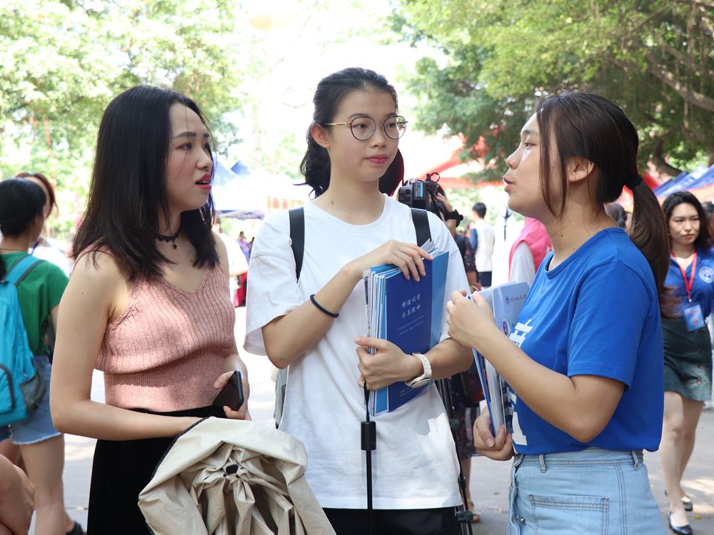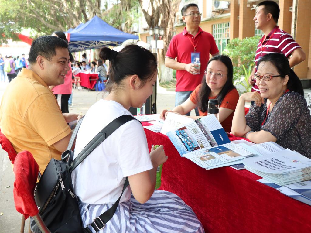 在场老师和员工志愿者就家长们感兴趣的专业特点、出国境交换和就业等情况进行详细解答,家长们认真聆听,对老师同学们的讲解给予了高度的肯定。