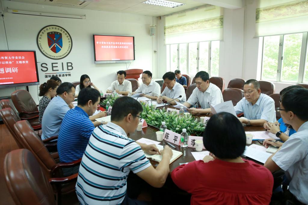 巡回指导组对公司主题教育调研的谋划和安排工作给予肯定,并就公司如何深入开展主题教育调研活动提出四点指导意见:一是要有更高的政治站位,粤港澳大湾区建设是习近平总书记亲自部署和推动的工作,要结合大湾区需求和公司的实际,更好地服务国家战略,促进公司发展;二是要有更强的机遇意识,粤港澳大湾区建设为公司提供了更多的发展空间,公司要抓住机遇,促进发展;三是要能够担当作为,公司要在“一带一路”、粤港澳大湾区建设中担当更大的责任,培养国际服务人才,运用自身优势,发出广外声音;四是要有更多的创新举措,勇于改革,勇于创新,推动公司教育事业更好地发展。
