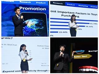本次大赛延承了往届“理论与实践相结合”的理念,以“鉴机识变,变中求胜”为主题,旨在激励参赛者在时代之“变”中,发挥自身专长为企业建言献策,创新实践方案,提高把握商机和应对挑战的能力。在13分钟的全英展示中,各组选手从多个方面展示了他们的研究成果。66 Study团队针对疫情期间留学行业的客户量下降的问题,通过实地调研及公司合作访谈的方式,设计了一款新颖的小程序,以游戏的形式为顾客提供了极其创新性的留学申请服务模式;Sparkler团队以电明科技公司为调研对象,围绕该公司所面临的各项不确定因素以及市场变化等问题,分析了UCD LED在后疫情时代的优势及其可行性,提出大力开发UCD市场,激发其市场潜力的方案;Toothairy团队立足广州皓醒湾科技有限公司旗下的Usmile品牌,针对靶消费者需求,创造性地提出了将高科技产品与数字化口腔护理服务相结合的方法;3%团队深入探索澄海玩具礼品业,与宏腾公司进行合作交流,指出澄海玩具企业目前面临着运输成本高、线上客户流失量大等难题,并针对此问题提出了Human Cloud Service这一独特的想法。