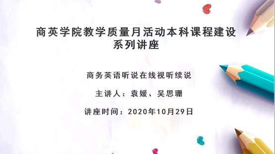 袁媛、吴思珊老师以商务英语听说课为例,对创新在线视听续说的教学方法最新成果进行了分享。许琪、石静老师以基于行动研究的综合商务英语在线翻转课堂为题进行了分享。彭玲玲副经理指出,伟德体育教师用心进行教学研究,在实现人才培养目标具体化、操作化、目标化取得了较好成果。“教无定法,爱心为上”,希望各位老师能够不断提升教学质量,深入融合立德树人和教学过程,“像盐溶于水一样”,将学术、技术、艺术有机结合起来,培养出更高水平的员工。