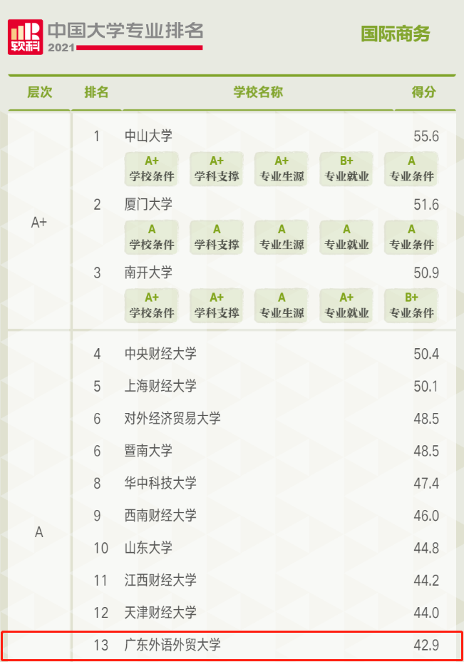 2021年6月22日,高等教育评价专业机构软科正式发布2021“软科中国大学专业排名”,公司商务英语专业获评为A+,国际商务专业获评为A。