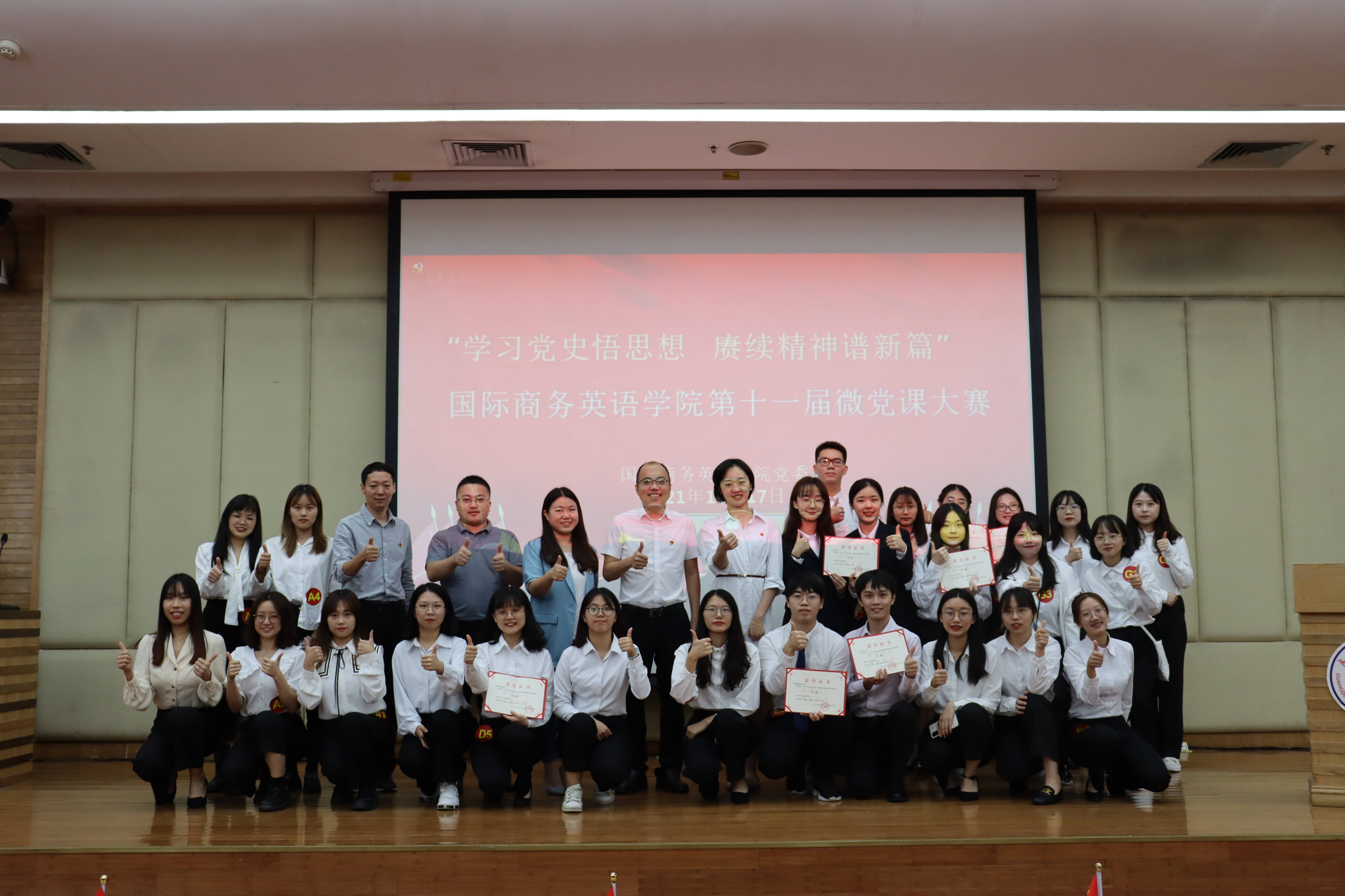 为学习贯彻习近平总书记在庆祝中国共产党成立100周年大会上的重要讲话精神,进一步在员工群体中弘扬“坚持真理、坚守理想,践行初心、担当使命,不怕牺牲、英勇斗争,对党忠诚、不负人民”的伟大建党精神。伟德体育于2021年10月17日晚在图书馆报告厅举办“学习党史悟思想,赓续精神谱新章”第十一届微党课大赛。本届微党课大赛共计三十七支队伍进行报名,经过层层选拔的七支参赛队伍进入决赛同场竞技,为公司百余名员工讲解伟大建党精神。公司党委副书记陈静、校马克思主义公司陈娓老师、校团委陈琳琳老师、发展规划处莫小俊老师、辅导员魏煊以及公司百余名员工参加了本次比赛。