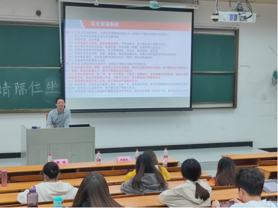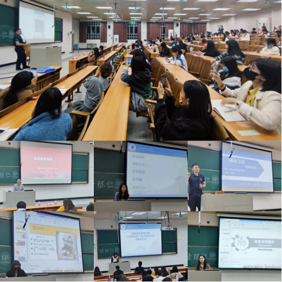 刘俊杰警官、魏煊老师及王施然老师分别就“防诈宣传教育”“宿舍管理培训”以及“宿舍文明建设”主题开展讲座培训。刘警官结合丰富的案例,为同学们讲解总结了常见六种电信诈骗类型:网络购物诈骗、冒充客服诈骗、网络贷款诈骗、刷单兼职诈骗、冒充公检法诈骗、网络交友诱导投资诈骗以及断卡诈骗。刘警官提醒同学们谨记“不听、不信、不转账”,及时注册好国家反诈中心app,提高反诈有效性,增强自我保护力。魏老师在“宿舍管理培训”专题中深入浅出地为大家讲解了如何建立好宿舍关系,并就宿舍消防安全、用电安全、维护宿舍公共秩序、住宿规定等方面作出提醒,结合视频及案例引导大家认识到宿舍中的个人利益和集体利益牢牢绑在一起,鼓励大家形成良好的宿舍价值观。在“宿舍文明建设”专题中,王老师从“学会建立关系和规则”“学会认清并解决问题”及“学会相互鼓励共同进步”三个方面讲解了如何建设文明宿舍,同时还邀请了“校级十佳宿舍”15间候选宿舍之一——北校区1栋320宿舍的宿舍长2019级商务英语专业本科生彭佳艺同学分享宿舍文明建设心得。