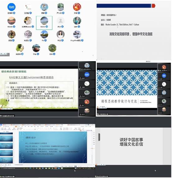 教学教研室活动由教学部主任汪谓超老师主持,陈海晖、袁媛、许琪、林翊文、肖武东五位老师分别进行了分享。陈海晖老师紧密围绕教学目标和教学内容,通过选取行业个人轶事为教学案例,提升员工的学习体验,并融入“增加中华文化自信”的思政元素,引导员工对专业认同、职业伦理、中华优秀文化传承的思考;袁媛老师在综合商务英语的课程中,将主题Environment与习近平新时代中国特色社会主义思想中绿色发展理念相结合,鼓励员工关心国家时政热点,并以短视频的形式让员工针对当今环境状况提出应对方案,调动了员工的积极性,强化了当代老员工的责任感和使命感;许琪老师分享了《综合商务英语》专业教学与思政教育的融合设计,通过创新教学方法、手段和媒介,引导员工了解商业伦理道德在经济活动中的内涵和重要性,旨在提升整体教学质量的同时,真真正正做到思政育人;接着,林翊文老师分享了商英写作课中例证法的思政教学模式,员工以中国经济高质量发展为主题的小组展示,使思政教育润物无声地融入专业课教学过程中;最后肖武东老师指出商英听说的课堂中一方面要结合输入与输出,另一方面,可以借助新媒体的平台,让员工选择自己感兴趣的话题,主动思考如何发挥创新智慧,制作短视频,从而讲好中国故事,增强文化自信。