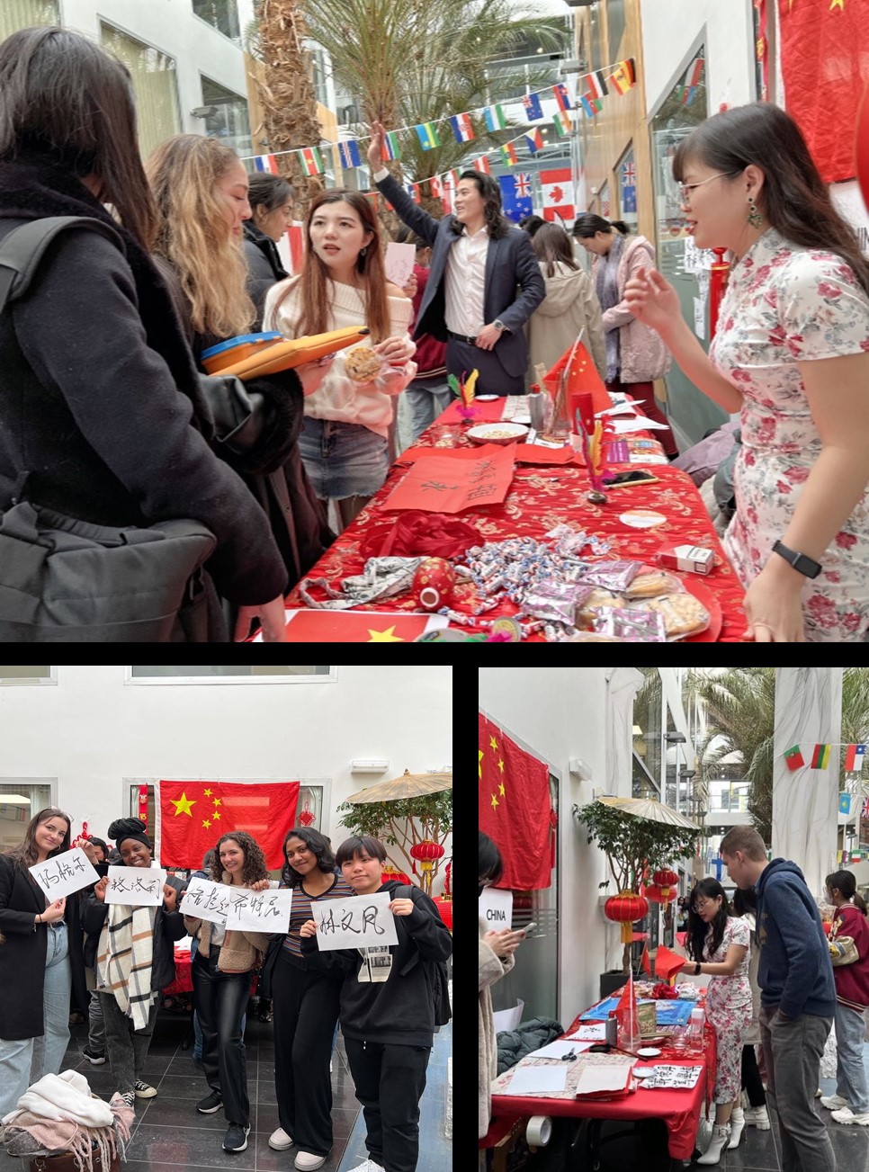 其次,在出国留学前,我就下定决心要做好中国文化传播的使者,中西文化交流的桥梁,所以我提前买了旗袍、汉服和一些具有中国特色的小礼物,以便日后国外的同学朋友生日和中国传统节日时用到。雷恩商公司举办国际展会的时候,我有幸和同学一起开设了一个摊位传播中国文化和美食。这个时候我就穿上了我的旗袍,想要更好地展现出中国文化与魅力。