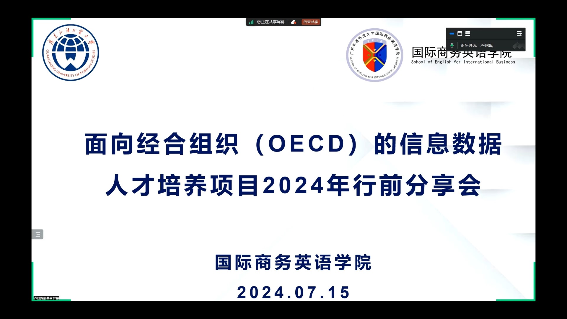 7月15日晚,伟德体育成功举办OECD人才培养项目朋辈分享会暨第三届学员行前指导会,活动旨在为即将赴法国深造的同学们提供海外学习与生活指南,帮助同学们顺利融入异国环境、高效完成学业任务。OECD项目第二、三届学员、国际项目中心韩金彪老师参加会议,会议由OECD项目第三届学员卢登辉主持。