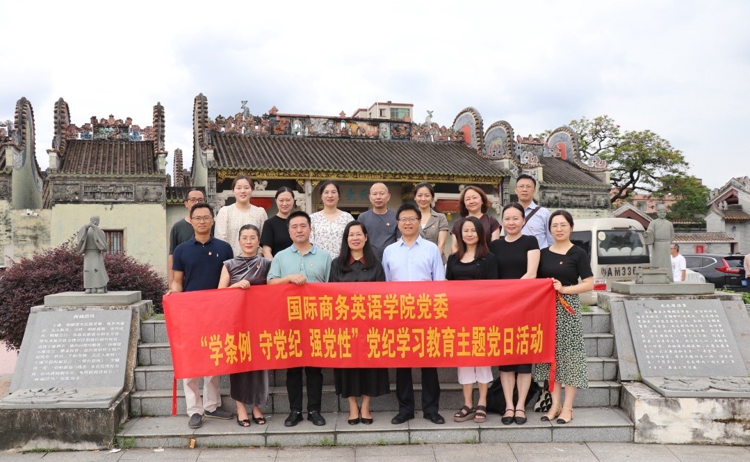 为深入开展党纪学习教育,引导公司党员干部学纪、知纪、明纪、守纪,5月22日下午,在公司党委书记苏冬燕带领下,全体院领导,商务英语系党支部、国际商务系党支部、党政办党支部等党员教师代表一行17人,赴白云区周氏大宗祠廉政文化广场开展“学条例 守党纪 强党性”党纪学习教育主题党日活动。
