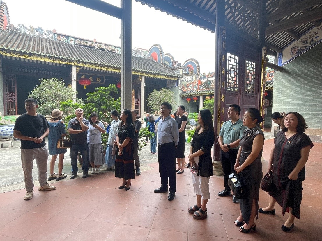 周氏大宗祠为白云区甚至广州市鲜见的面积最大、保存最好的古建筑之一,2002年7月被公布为广州市文物保护单位,也是龙归街目前唯一一处市级文物保护单位。在南村村委工作人员的带领下,全体教师实地参观了由周氏大宗祠、廉政文化广场、颐园三部分组成的廉政文化主题公园。在当地人俗称“孖祠堂”的周氏大宗祠,在周氏大宗祠门前以喷水池为中心,用“廉石压舟”“陶母退鱼”等16个廉政故事雕像群组成一个圆形的文化广场,在祠堂后面1400平方米的颐园内的莲花池、廉政文化长廊,全体教师深刻感悟了周敦颐的家国情怀与清廉之思,世代传承的仁爱之风与爱廉遗训。