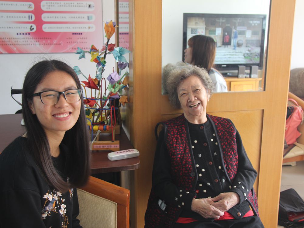 走进其中一个十分整洁舒适的房间,屋内的老人正在看粤剧。看到志愿者们的进来,她连忙高兴得起身,热情亲切地握着志愿者的手。通过一番畅谈,志愿者们了解到这位老奶奶是一位非常开朗、开明而且有追求的人。而让人惊讶的是,看上去神采奕奕的她如今已是92岁高龄。老奶奶平常喜欢看报纸,听听粤剧,在生活中十分关注国家及社会上发生的大事小事。即便很少有家人的陪伴,老奶奶脸上仍然时常洋溢着欢快的笑容。她说,笑容总能带走忧愁与悲伤,人应该多笑笑,才能活得好,对得起自己。