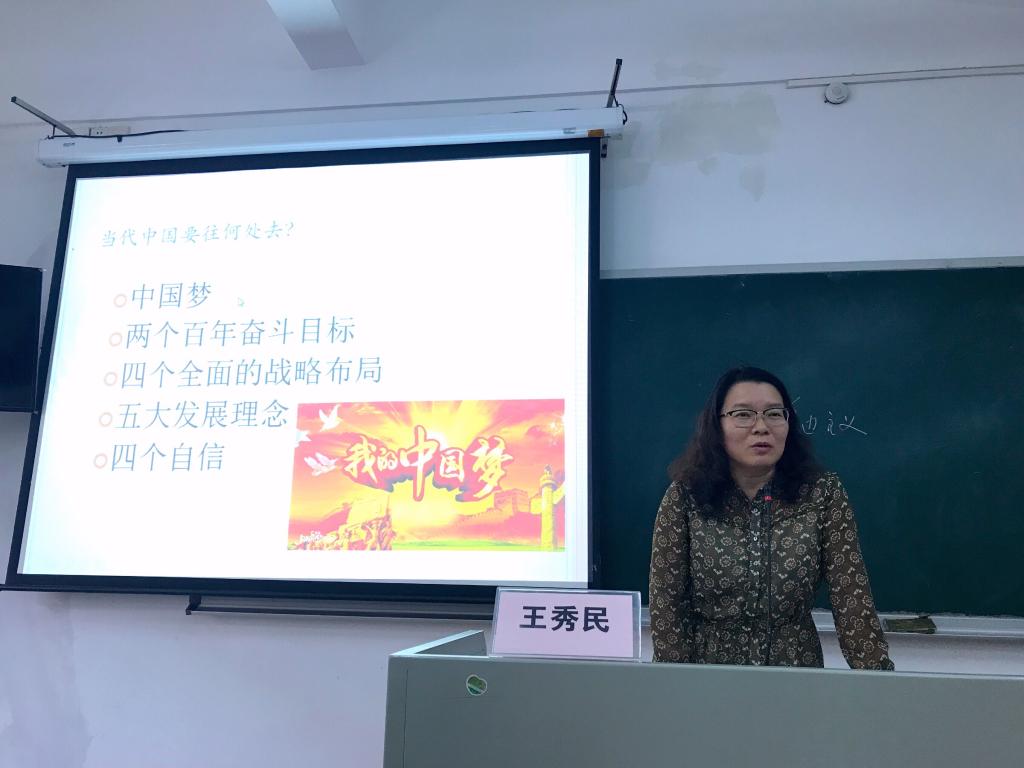 会上,王秀民先就“国际化高素质人才”、“中国心”的释义对第一课的主题进行深入解读,并通过分析当今世界各国的局势,结合详实的数据和典型的案例,向同学们阐述了中国梦的内涵和时代意义。在谈及如何强化国际化高素质人才的“中国心”,王秀民提出要坚定“四个自信”(即道路自信、理论自信、制度自信、文化自信),强调“四个自信”的重要论述是对坚定共产主义的伟大理想和中国特色社会主义共同理想的坚定承诺和现实推进。
