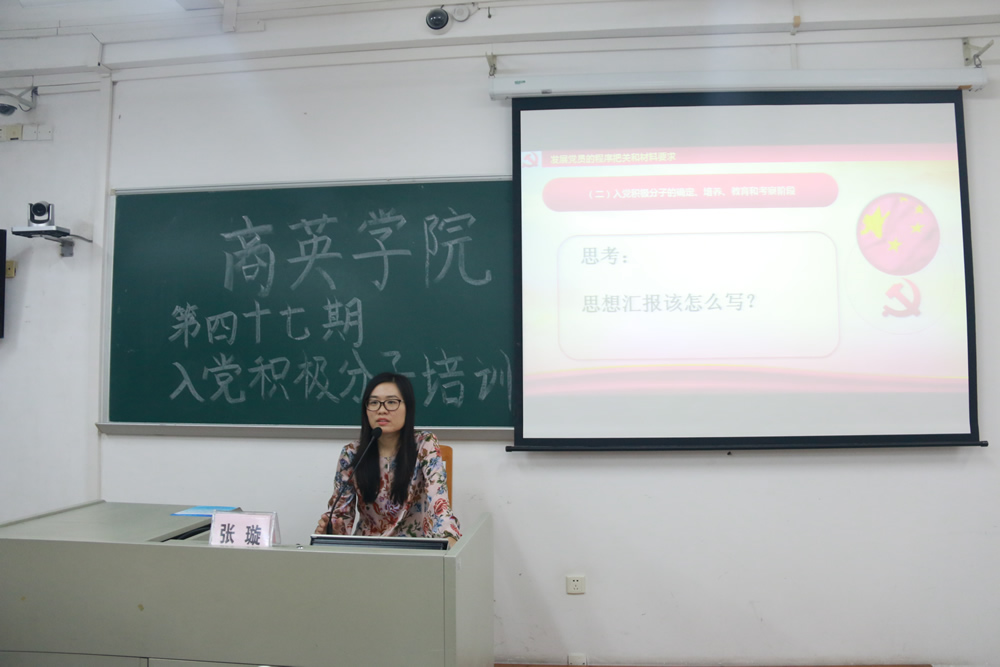 张璇老师首先向同学们介绍了发展党员工作的重要性及为什么要做好发展党员工作,并以“发展党员是一件严肃认真的事情”来鼓励同学们认真学习《中国共产党发展党员工作细则》,规范自身入党程序。