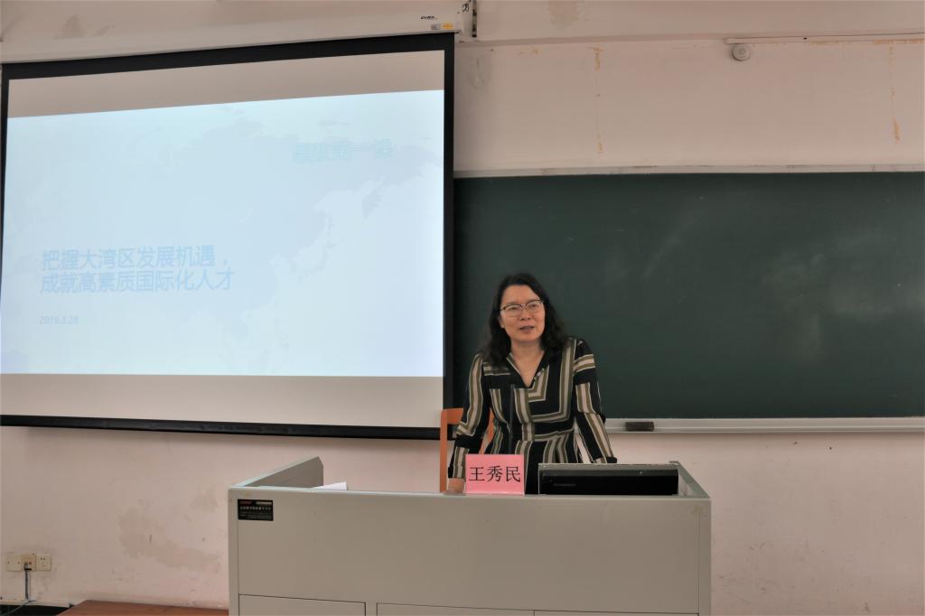 3月28日下午,伟德体育书记思政第一课在六教B213教室顺利举行。公司党委书记王秀民作题为《把握大湾区发展机遇,成就高素质国际化人才》的思政专题讲座。本次讲座由辅导员陈琳琳主持,第48期积极分子和第8期发展对象参加。