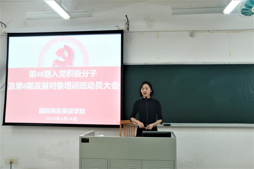 动员讲话后,公司党建办公室的何春杏同学对第48期积极分子及第8期发展对象的分组情况、党校教学管理规定、注意事项以及课程安排进行详细介绍和具体说明。