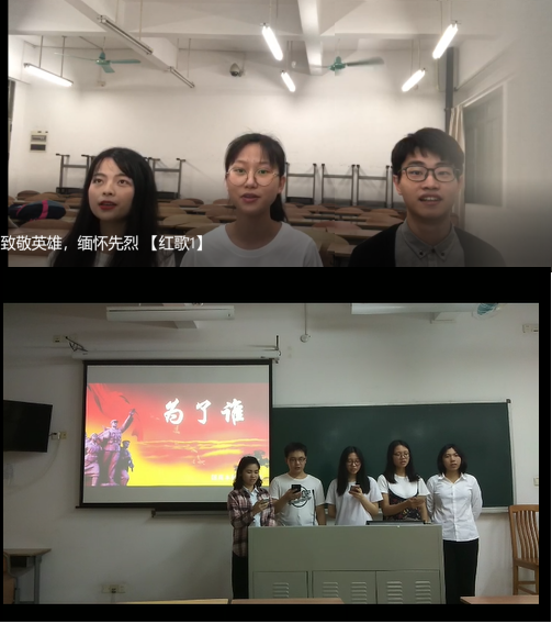 月底,诗歌朗诵也热烈展开,以吕倩媛、方圆、梅芸同志及李君铭、林淳、车可莹为两个党小组展开。诗歌朗诵抑扬顿挫,铿锵有力,同志们在朗诵中缅怀先烈,致敬英雄!