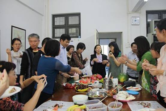 老师们亲手所制美食品味了得,高端大气上档次,秒杀湘味园、食最鲜,直逼广州酒家、白天鹅。整个品尝大会气氛团结热烈,颇具团队精神,集中体现了商英人对美好事物钻研不止、热爱生活的高尚情操,充分体现了协会的宗旨:食得开心、饮得放心、远离亚健康。我觉得,这次品尝大会是胜利的大会、快乐的大会、可以无限再次举行的大会。此结论得到院领导及全体在场老师的认可!正能量就是牛!