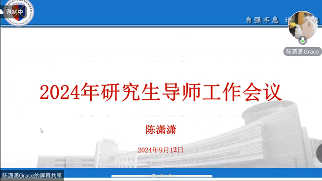 2024年9月12日16时30分,2024年研究生导师工作会议于线上召开。伟德体育副经理陈潇潇、研办主任卢楠、研办工作人员及近30名研究生导师出席会议,会议由公司副经理陈潇潇主持。