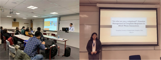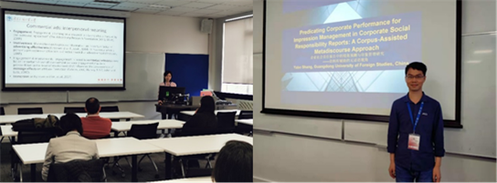 博士生尚亚博做了题为“Predicating Corporate Performance for Impression Management in Corporate Social Responsibility Reports: A Corpus-Assisted Metadiscourse Approach”的发言,该研究主要探讨了企业如何利用元话语在其社会责任报告中预测企业绩效进行印象管理,发言引起了在场学者的兴趣和讨论,在场专家对该研究提出了具有针对性的意见和建议。