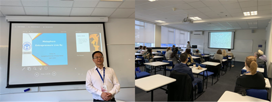 在会议上,胡春雨教授做了题为“Metaphors Entrepreneurs Live By”的发言,他首先从古希腊神话、泰戈尔的诗歌及电影《阿甘正传》中的知名隐喻为例,引入“概念隐喻理论”,并借助三段论推理,通过大前提Metaphors we live by和小前提Entrepreneurs are ‘we’, 推断出Metaphors entrepreneurs live by这一重要结论。之后他指出了“概念隐喻理论”的不足并在此基础上引入“刻意隐喻理论”,然后以这一新当代隐喻理论为指导,分析了伯克希尔·哈撒维公司CEO沃伦·巴菲特和亚马逊集团董事会主席兼CEO杰夫·贝佐斯所用的刻意隐喻及这些隐喻在指导企业发展、建构积极企业家形象中的作用。他的发言引起了多名与会者的兴趣,来自美国、澳大利亚等国的学者就刻意隐喻是否具有文化属性、企业家的隐喻使用与企业家精神存在什么关系等问题与胡春雨教授交流。
