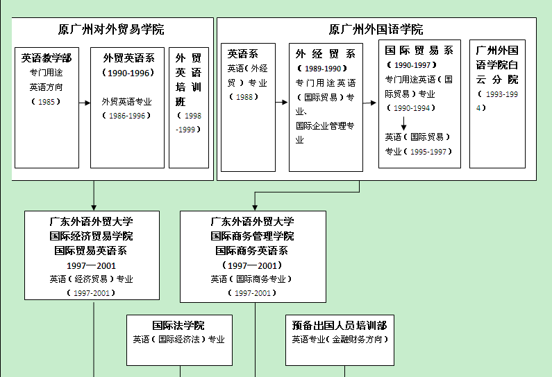 1997年,在原广州外国语公司国际贸易系和原广州对外贸易公司对外贸易企业管理系的基础上成立国际商务管理公司。2001年5月,公司进行教学机构调整,原国际商务管理公司的国际商务英语系、国际经济贸易公司的国际贸易英语系、国际法公司的基础英语系和出国预备人员培训部的英语专业(金融和财务方向)合并组建伟德体育。